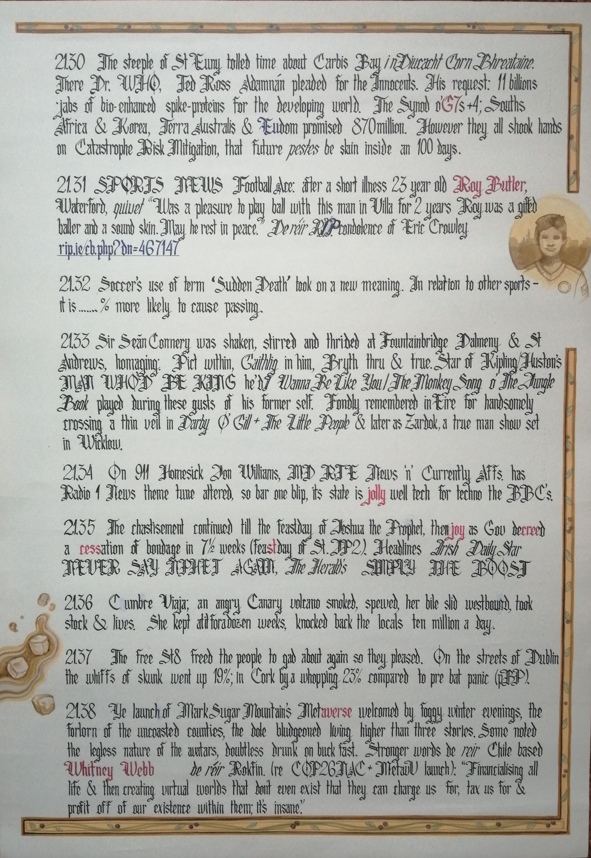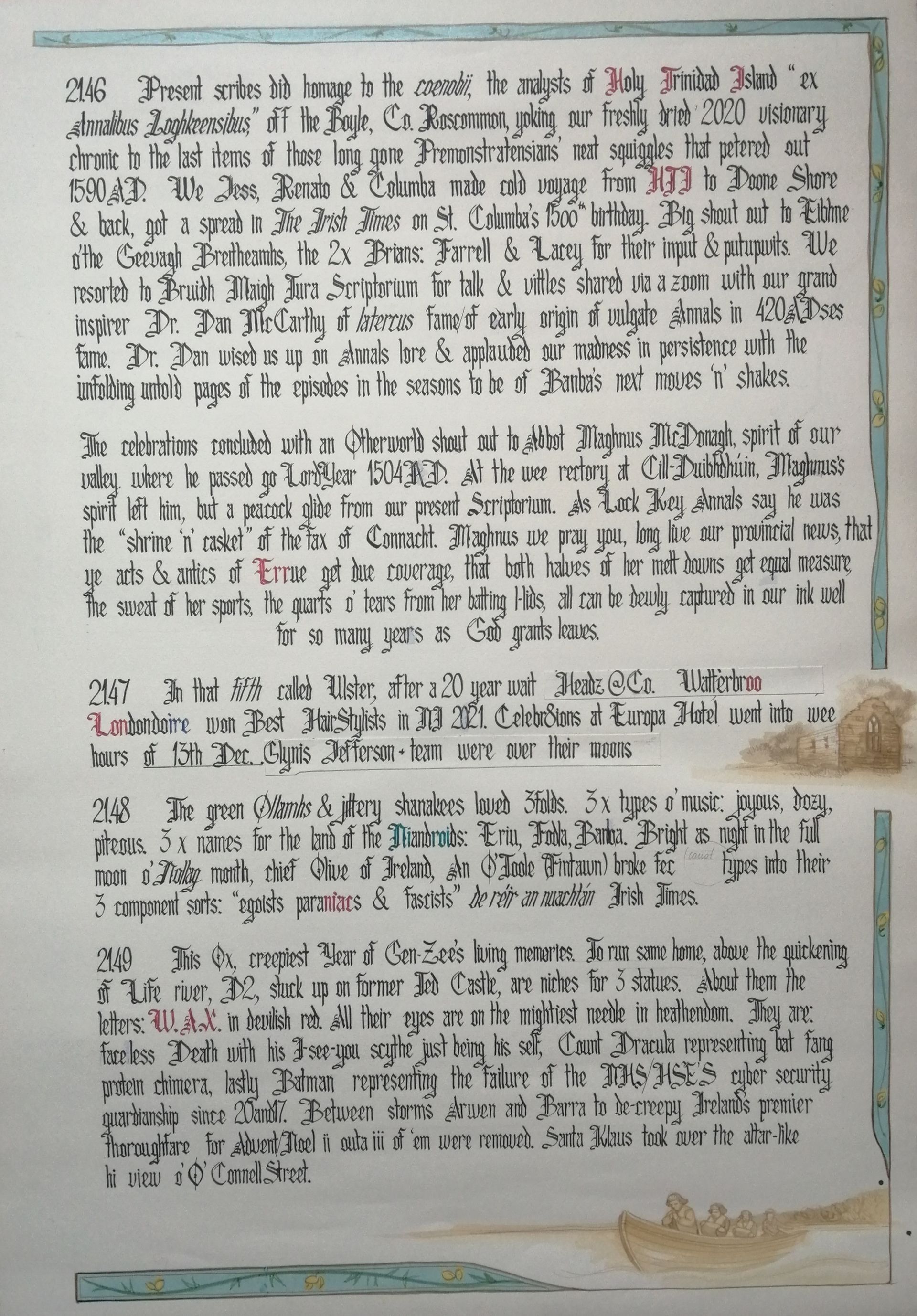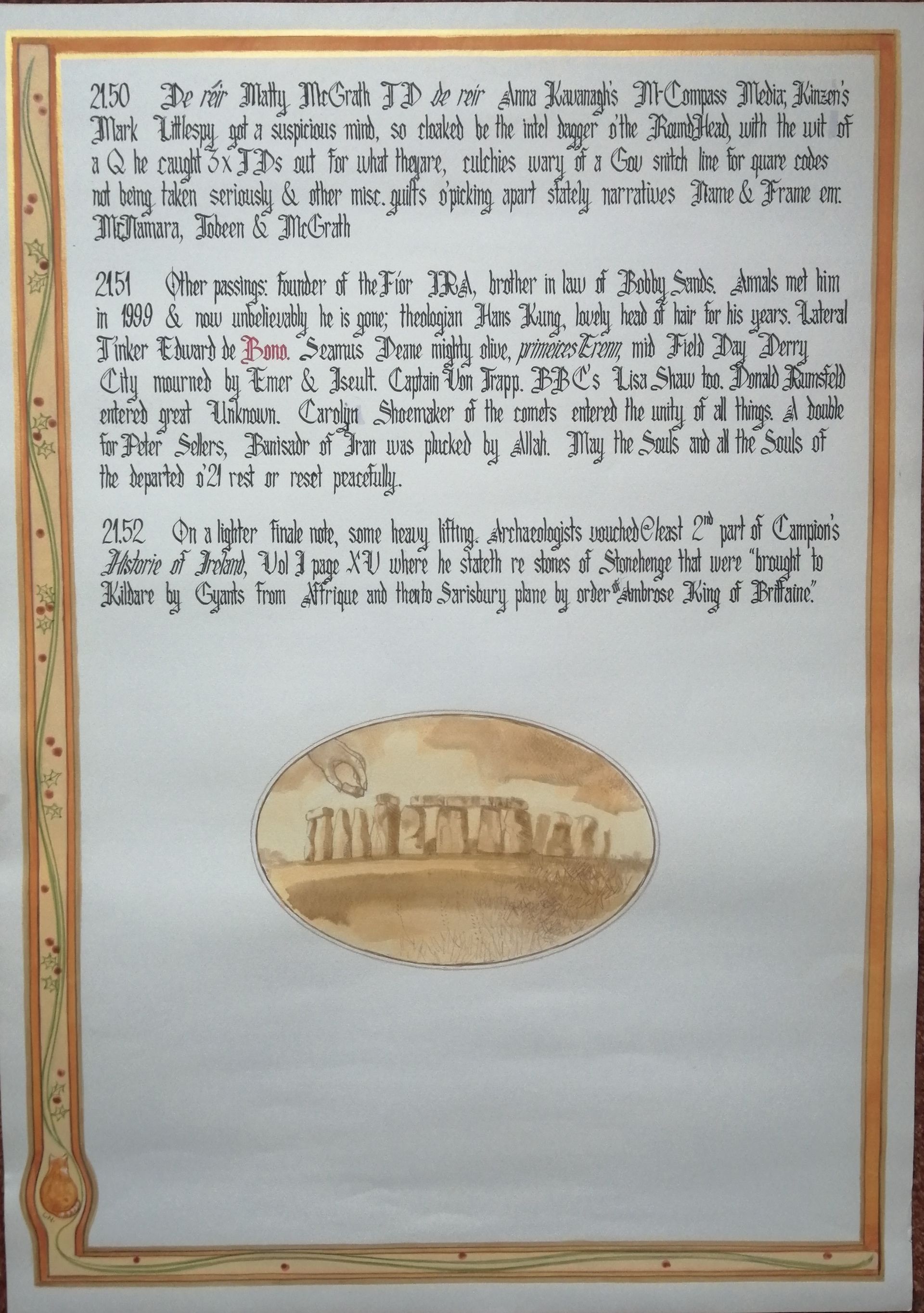 De Reir Book is currently writing up items for 2024. These will commence going on to parchment by August 2025. We have one wee gimmick for this year. Looking for items from anybody who lives along this longitude line.......